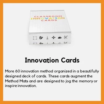 • Method Mats - 20+ of the best innovation methods that have been developed and adapted for teachers and schools. These are the methods that are used by the world's leading designers at Stanford, IDEO, and Apple - adapted for educators. Also, a deck of 60 method cards adapted for educators and students pursuing innovation.